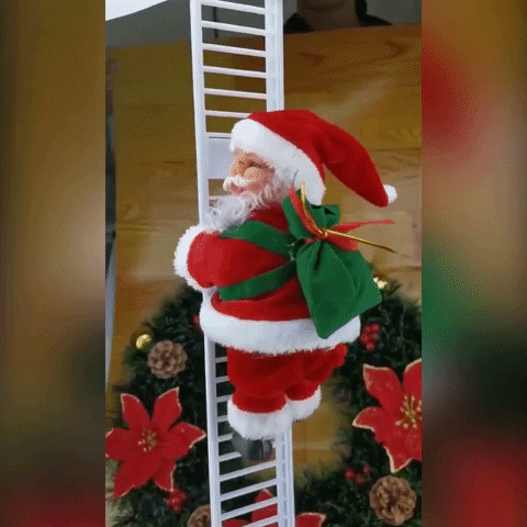 Babbo Natale, carico di doni, sale in automatico la scala al suono della musica, creando così la classica atmosfera natalizia.